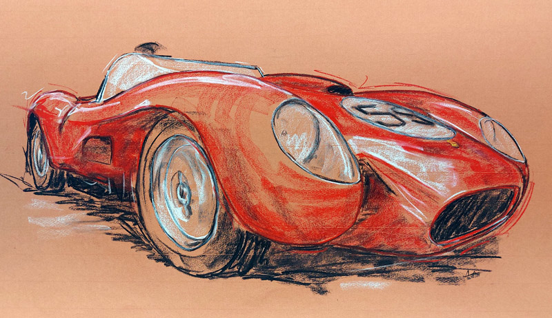 Alfa Romeo 6c Baujahr 1928 BILDBESCHREIBUNG Alfa Romeo, 6c, Baujahr 1928 Original Pastellzeichnung auf Büttenpapier / Grau / Maße ca. 70 x 50 cm, handsigniert
