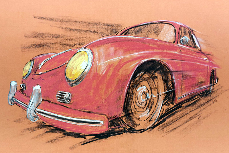 Der Ur Porsche Das erste Serienmodell gerne auch der Ur Porsche genannt. Die ersten Modelle wurden in Kärnten per Hand gefertigt. Passend dazu eine Pastellzeichnung…