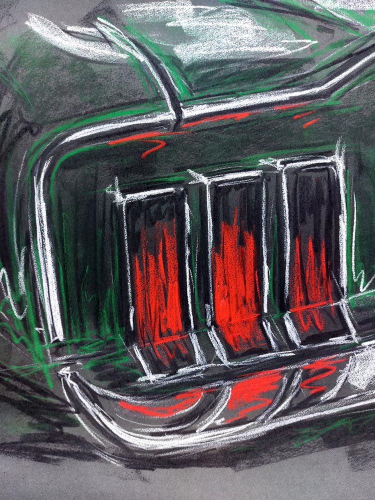 Ford Mustang Heck – Original – Pastellzeichnung auf Büttenpapier (schwarz) / 60 x 48 cm / signiert